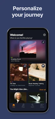 تخيل flowkey كمعلم البيانو الشخصي الذي يفتح لك عالمًا من التعبير الموسيقي بين أناملك. مع مجموعة واسعة تضم آلاف المقطوعات الموسيقية المنسقة بعناية، والتي تغطي أنواعًا متعددة من الكلاسيكية الخالدة والبوب الحيوي إلى موسيقى الأفلام والتلفزيون الآسرة وما بعدها، يضمن flowkey أن هناك دائمًا لحنًا جديدًا في انتظارك. يلبي التطبيق جميع مستويات المهارة، من المبتدئين تمامًا إلى العازفين المخضرمين، حيث تتوفر كل مقطوعة عبر أربعة مستويات صعوبة مميزة، مما يضمن رحلة مستمرة من الاكتشاف والإتقان. سواء كنت تمتلك بيانو صوتيًا كبيرًا، أو بيانو رقميًا حديثًا، أو لوحة مفاتيح مدمجة، يتكامل flowkey بسلاسة، محولًا آلتك إلى منصة تعليمية ديناميكية.